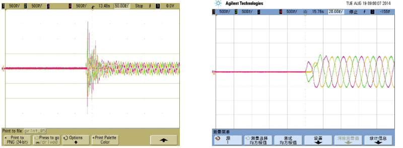 調(diào)諧/失諧電容器組隨機投入時的涌流                    無暫態(tài)投切技術(shù)可有效避免投入涌流