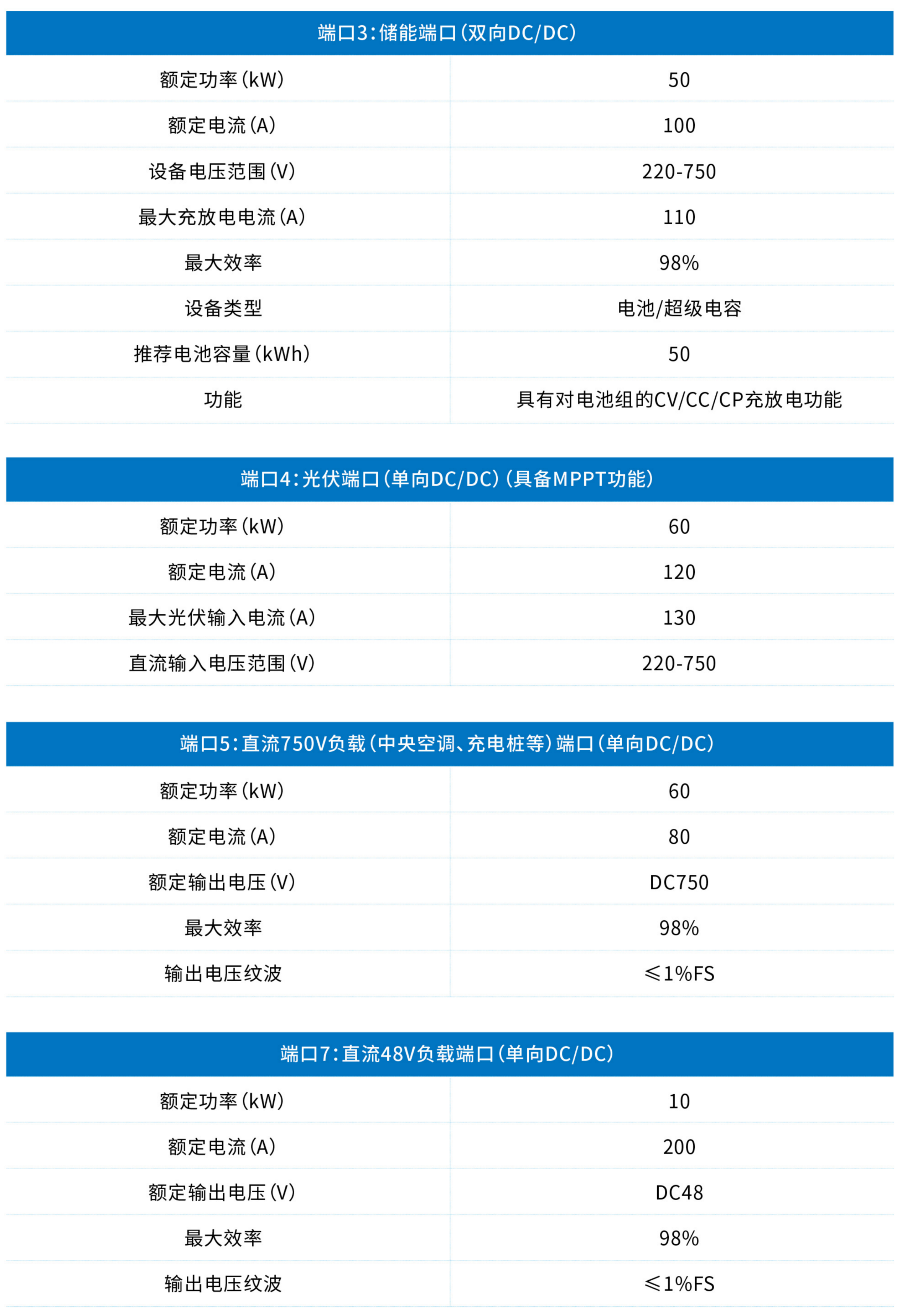 本公司生產(chǎn)的標準多端口電能路由器包含七個端口,其中兩個交流端口接市電或交流負載;五個直流端口分別接入儲能、光伏和三種電壓的直流負載,每個端口均可接入相應(yīng)電壓等級的有源或無源設(shè)備,任意端口間可以實現(xiàn)功率潮流的控制。