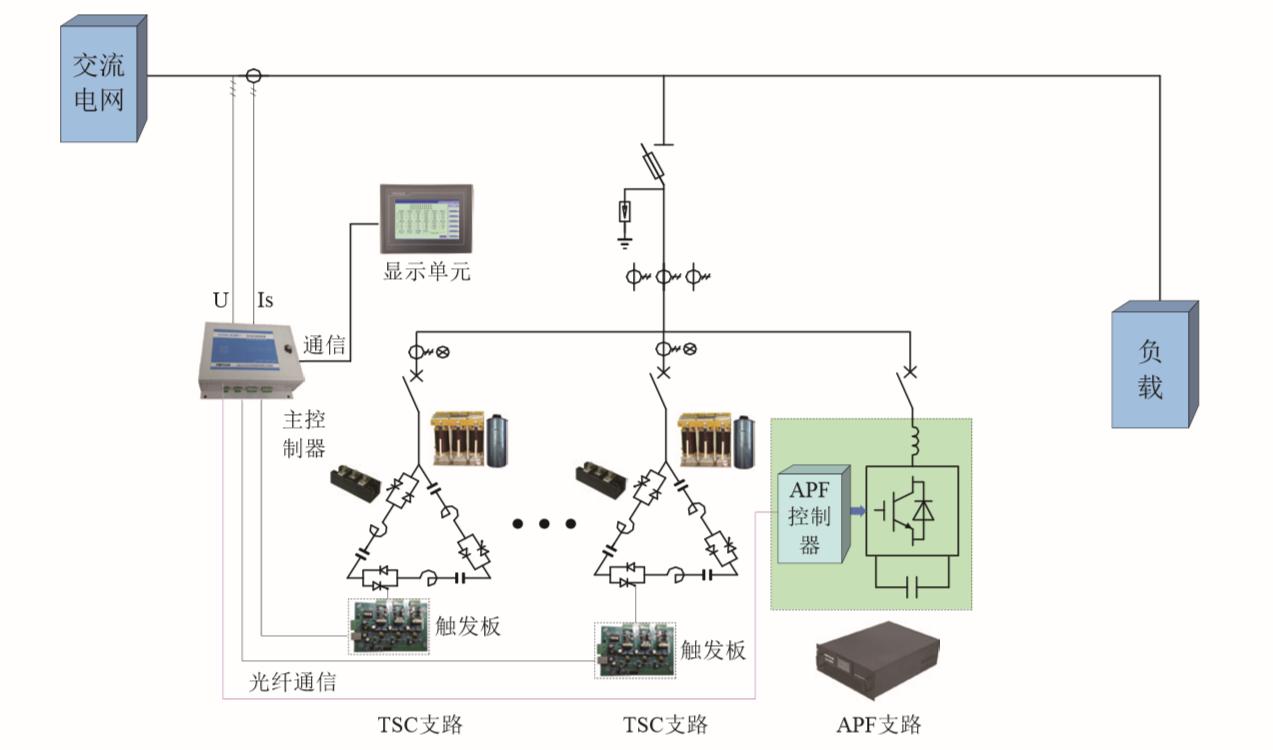 TAPF是由晶閘管投切電容器TSC和有源濾波器APF組合在一起的可快速、連續(xù)光滑調(diào)節(jié)電力系統(tǒng)無功功率并且可以進(jìn)行有源濾波的綜合補(bǔ)償裝置,解決了傳統(tǒng)無功補(bǔ)償精度不夠、諧波濾除效果差及純有源濾波器進(jìn)行無功補(bǔ)償成本高的問題,是低壓動(dòng)態(tài)無功補(bǔ)償兼有源濾波的性價(jià)比較高的設(shè)備。