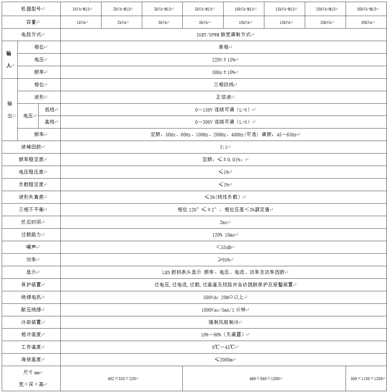 60Hz系列變頻電源單相輸入/三相輸出產品規格說明